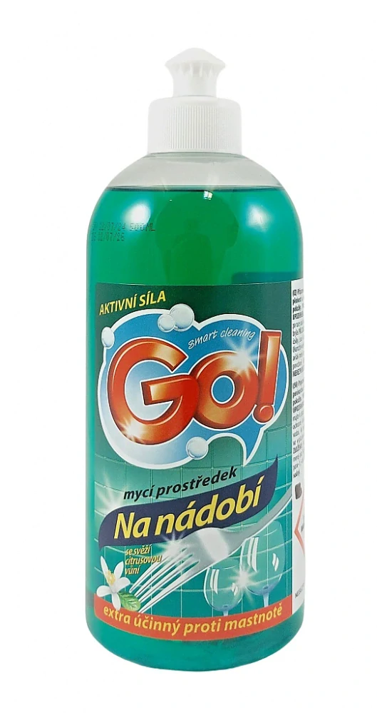 Díky vysoké koncentraci je GO! NA NÁDOBÍ velmi úsporný. Do 5 litrů vody stačí přidat pouze jednu polévkovou lžíci čističe. Poté stačí nádobí umýt v této voňavé směsi, opláchnout čistou vodou a kochat se zářivým leskem!